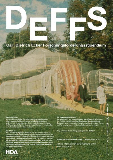 2017 findet das 50jährige Jubiläum der Ausstellung trigon 67: „ambiente“ statt. Die Arbeit im Rahmen des Stipendiums könnte sich mit den damaligen Akteuren und kulturellen sowie gesellschaftlichen Rahmenbedingungen dieser Zeit auseinandersetzen. Einreichschluss Bewerbung: 1. September 2016