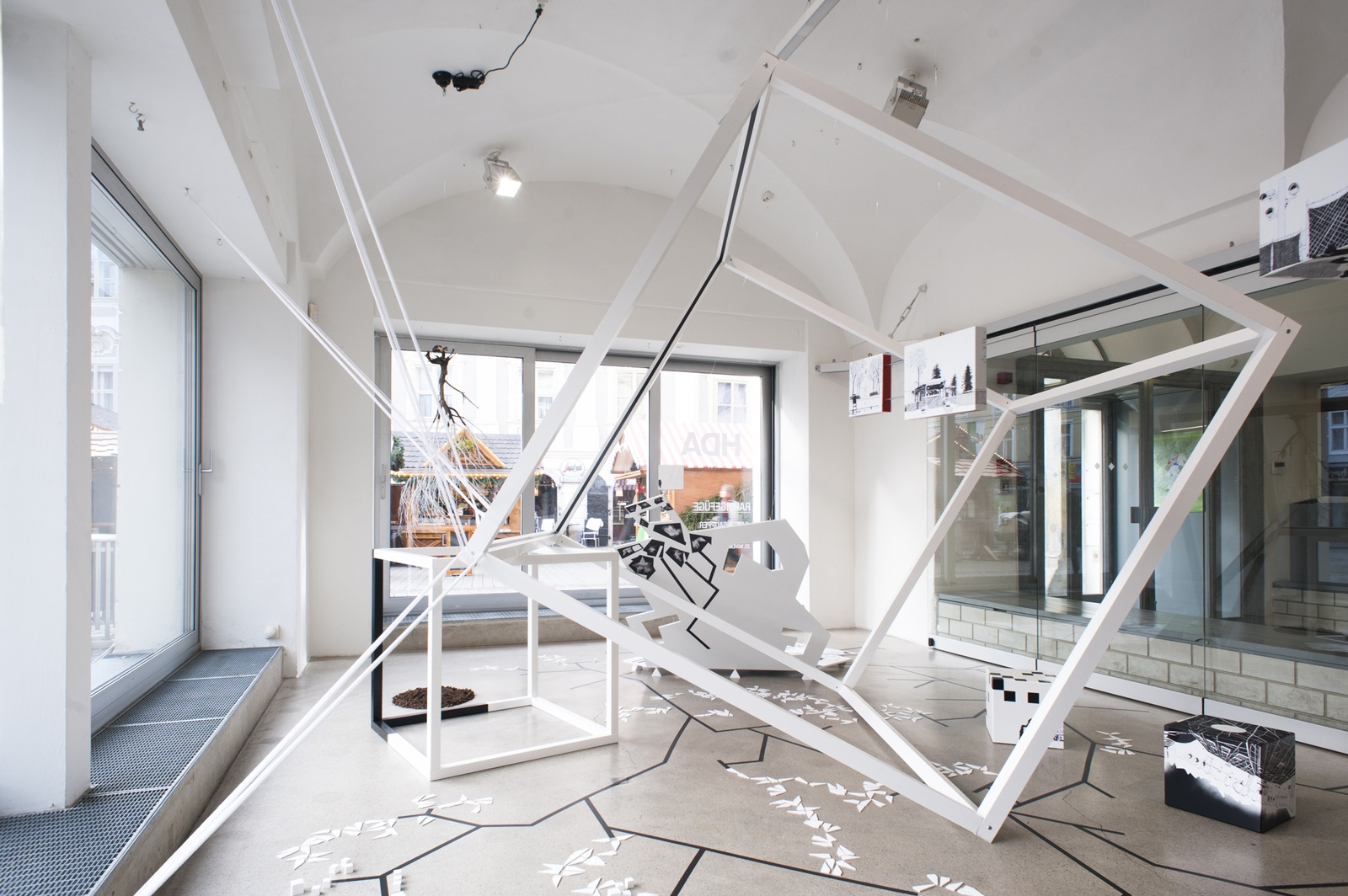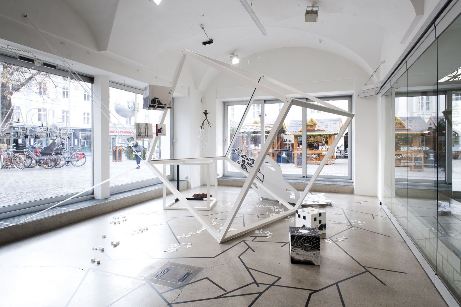 AusstellungWie ist der Raum beschaffen, wenn er nicht erfahren wird? Wie kann man Zeit bildlich darstellen? Die Künstlerin Judith Saupper beschäftigt sich mit genau diesen Fragen und erarbeitet in Form von Collagen, sowohl heuristisch als auch künstlerisch, zweidimensionale Arbeiten auf Papier, Modelle von Hochhäusern und Nicht-Orten sowie collagierte Raum-Objekte und Installationen.