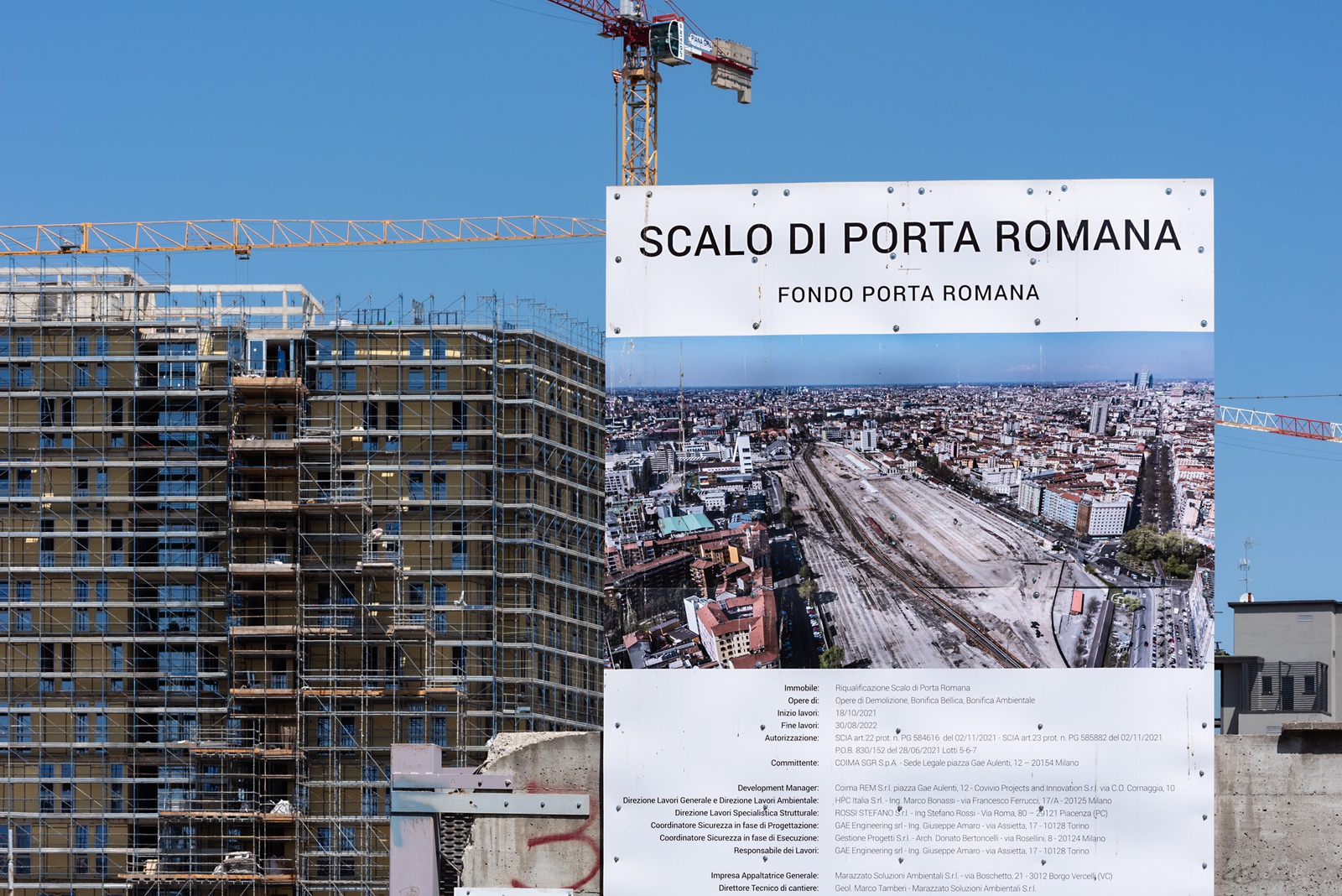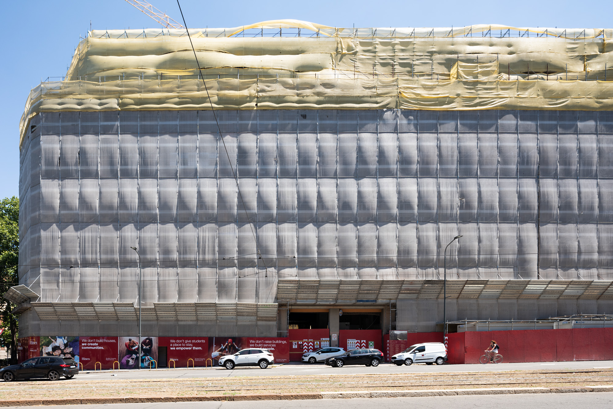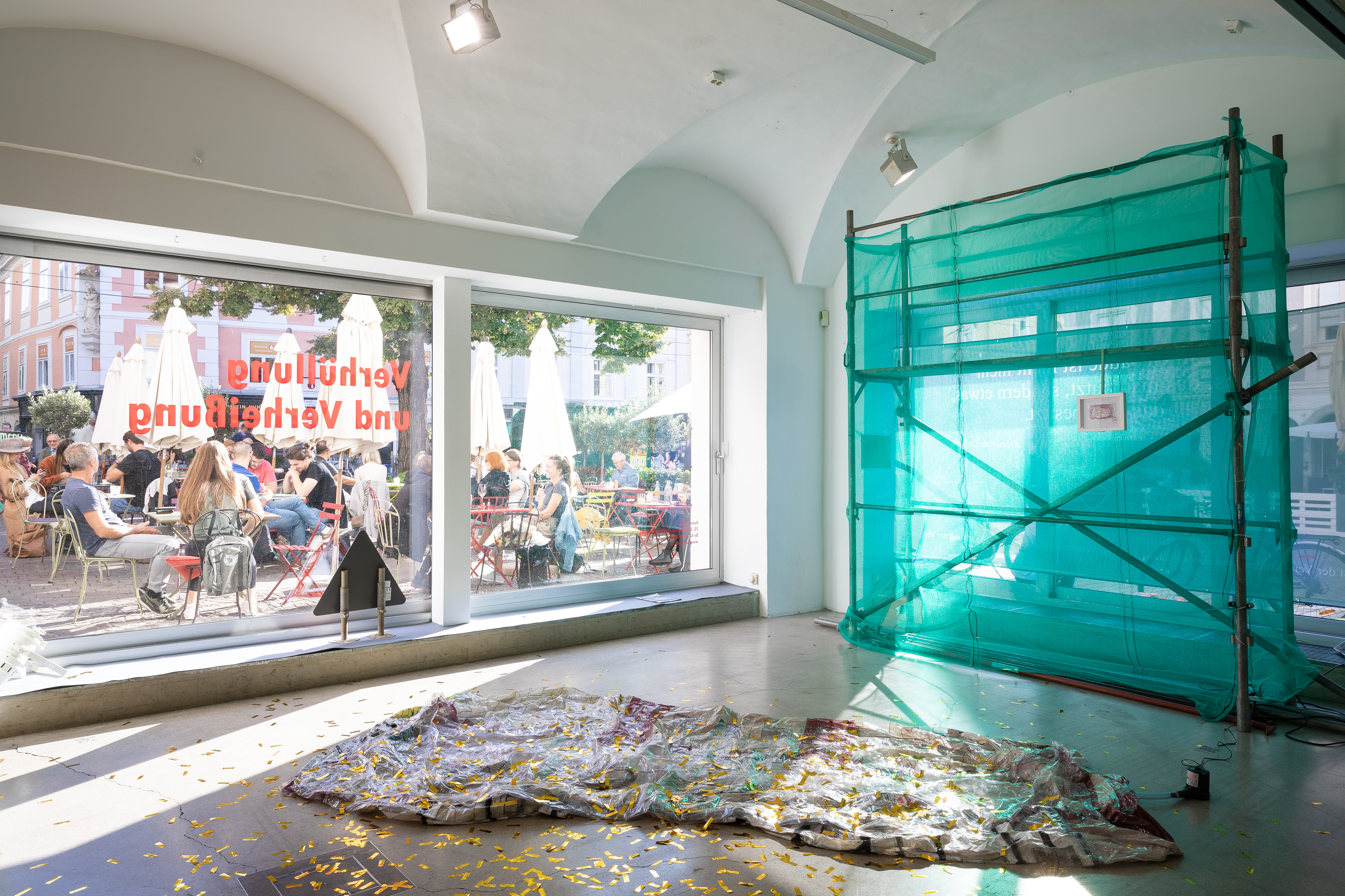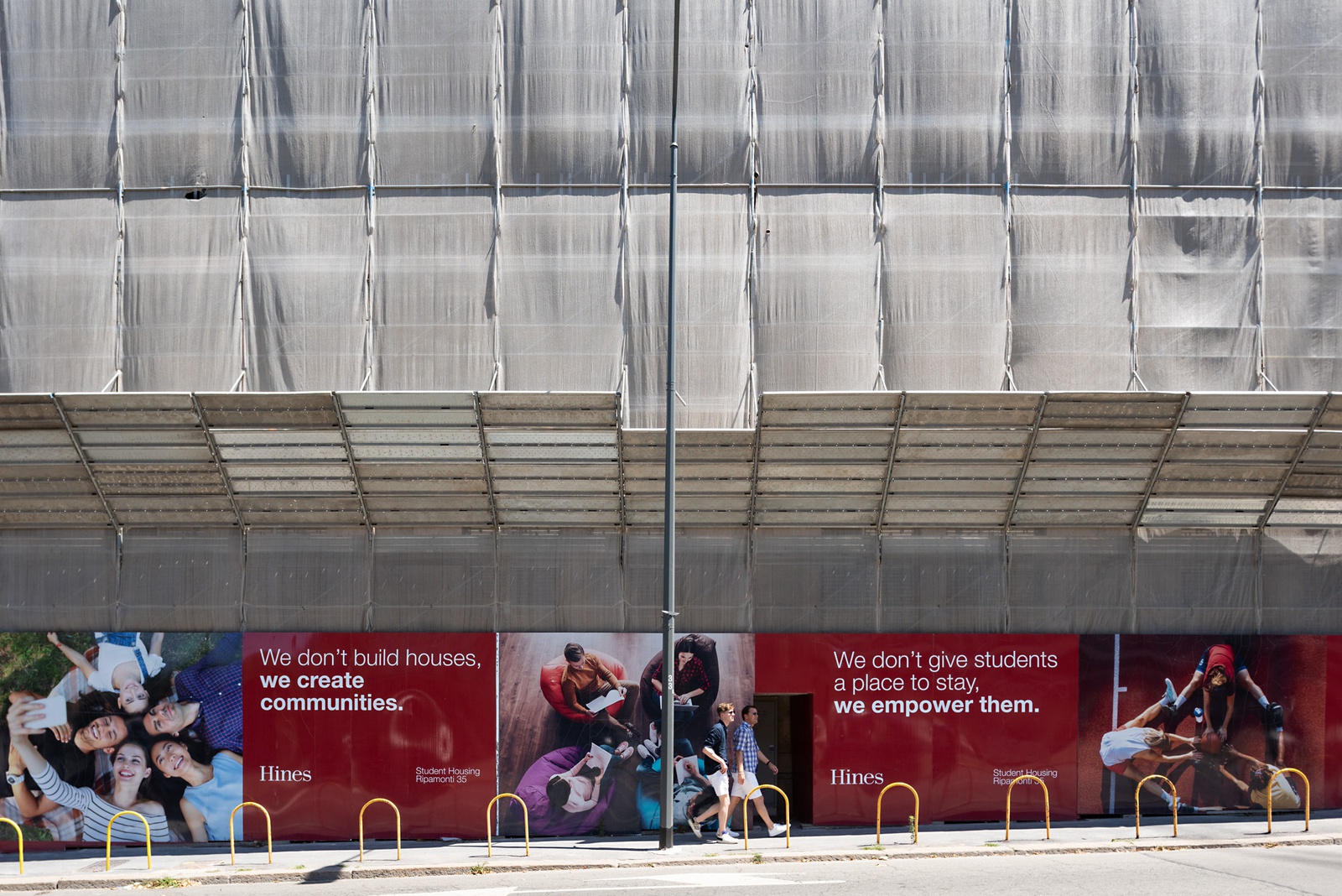 ERÖFFNUNG: 21.09.2022, 20 UHR || Die bildliche Darstellung von Bauten und städtischen Räumen gehört zu den wichtigsten Formen in der Kommunikation von zeitgenössischer Architektur. Im Stadtraum werden diese Visualisierungen oft zu Werbezwecken an Baugerüsten und Bauzäunen verwendet. Die Ausstellung "Verhüllung und Verheißung" geht dem Phänomen der Immobilienwerbung im öffentlichen Raum nach. Aufnahmen des Fotografen Hans Georg Esch von Plakaten aus verschiedenen Teilen der Welt werden Texten von Reinier de Graaf, AMO/OMA, Bildanalysen der Grafikdesignerin Rosa Nussbaum sowie einer Installation des Künstlers Sven Borger gegenübergestellt.