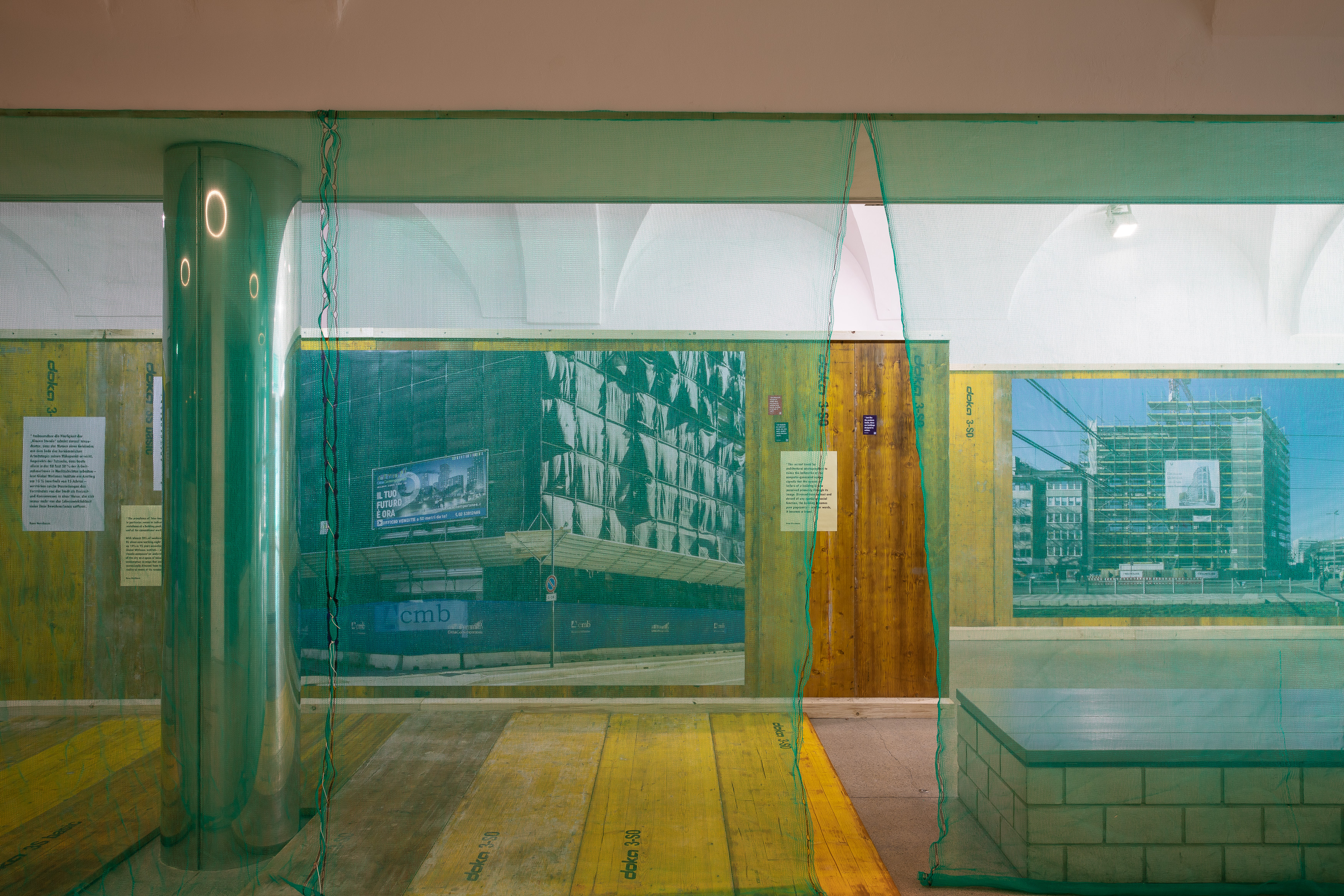 Kurztext Die bildliche Darstellung von Bauten und städtischen Räumen gehört zu den wichtigsten Formen in der Kommunikation von zeitgenössischer Architektur. Im Stadtraum werden diese Visualisierungen oft zu Werbezwecken an Baugerüsten und Bauzäunen verwendet. Die Ausstellung Verhüllung und Verheißung geht dem Phänomen der Immobilienwerbung im öffentlichen Raum nach. Aufnahmen des Fotografen Hans-Georg Esch von Plakaten aus verschiedenen Teilen der Welt werden Texten von Reinier de Graaf, AMO/OMA, Bildanalysen der Grafikdesignerin Rosa Nussbaum sowie einer Installation des Künstlers Sven Borger gegenübergestellt.