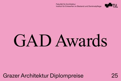 Alljährlich prämiert die Fakultät für Architektur der TU Graz mit den Grazer Architektur Diplompreisen (GAD) herausragende Abschlussarbeiten des vergangenen Studienjahres. Die Preisträger:innen des heurigen Jahres werden in Kurzvorträgen ihre Arbeiten im Haus der Architektur vorstellen. Über die Auswahl der Preise entscheidet eine externe Jury, die in diesem Jahr aus ehemaligen Preisträger:innen zusammengesetzt ist: Johannes Paar (Mair-Paar, Wien), Evelyn Temmel (BELT, Wien) und Thomas Untersweg (BUERO 41A, St. Margarethen Raab).