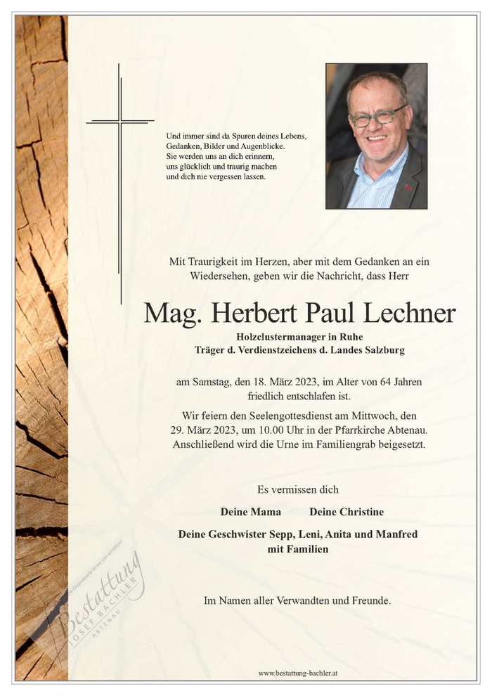 Die Initiative Architektur trauert um Herbert Paul Lechner. Als Manager bei Holzcluster hat er in vielen Projekten mit der Initiative Architektur eng zusammengearbeitet. Durch sein engagiertes Mitwirken sind die Ausstellung und das Publikationsprojekt zu Holzbau Salzburg erst möglich geworden. Mit fundiertem Fachwissen hat er an zentraler Stelle mitgewirkt.
