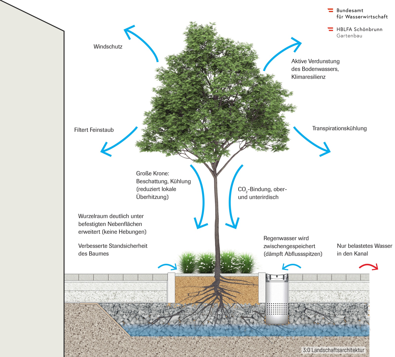 Wie groß der Platzbedarf eines ausgewachsenen Stadtbaumes ist, wird im afo architekturforum oberösterreich sichtbar.