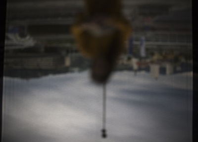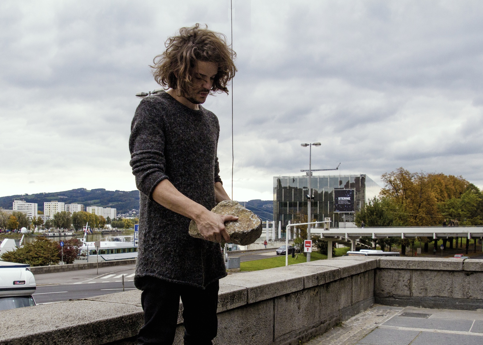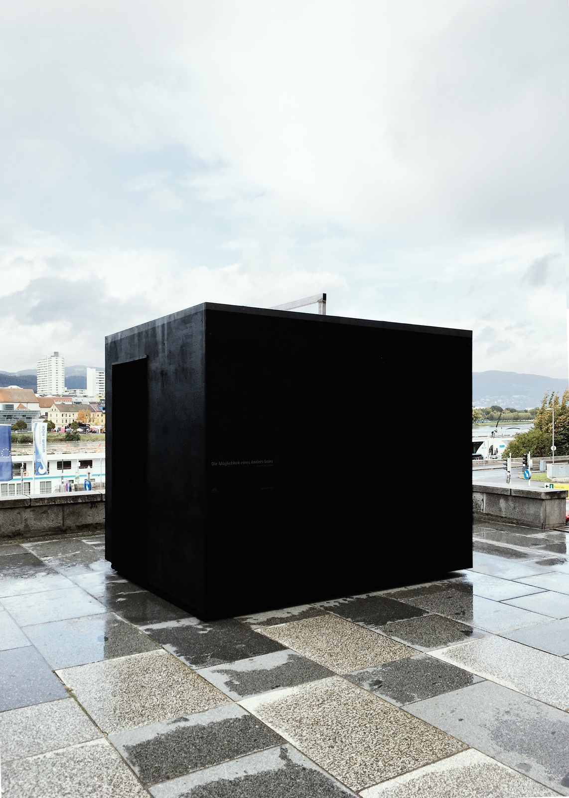 Im antiken Griechenland beschrieb Anaximander von Milet die kreisförmigen Bewegungen der Himmelskörper als riesigen Getriebemechanismus. Die Erde stand in dessen Zentrum, umgeben von einer Reihe sich darum drehender Räder. Durch kleine Löcher auf ihren Oberflächen drang der Schein des Feuers, das jenseits davon lag. Sonne, Mond und jeder einzelne Planet oder Stern, der unsere Nacht belebte, waren daher nichts weiter als Hohlräume, die andeuteten, dass etwas Glitzerndes hinter der Eingrenzung des Himmels existierte. Vor der Donau steht eine Camera obscura. Darin: der Abgrund der Dunkelheit und die fieberhafte Musik des brasilianischen Flusses Tietê. Von außen lüftet jemand die Abdeckung über einem kleinen Loch, das einen schwachen Lichtstrahl eindringen lässt. Mit einem Gewicht wie dem der Geschichte besteht die Lücke darauf, sich zu verdecken, doch dieses Andere widersetzt sich – und bewirkt durch seine Präsenz die sich abzeichnende Landschaft im Inneren. Die Vorstellung, dass der undurchlässige Hintergrund der Dinge keine Begrenzung, sondern ein Schleier zwischen uns und dem Lichtstrahl des Unbekannten ist, verwandelt dieses kleine Loch zur Möglichkeit, sich über das Anders-Sein klar zu werden, das sich hinter jeder Grenze befindet. Über ein Nichtvorhandensein, welches die Kunde von einer Landschaft filtert, die nur durch einen Anderen möglich wird: ein Bild des Unbezwingbaren, eine Gestalt, die nicht im Voraus abzuschätzen ist. Nur indem die vollkommenste Dunkelheit aufgestochen wird, scheint das Hereinbrechen einer Landschaft, die mit Leidenschaft in Verbindung steht, möglich. Dies geschieht jedoch nur so lange, wie diese kleine Wunde offen gehalten wird.