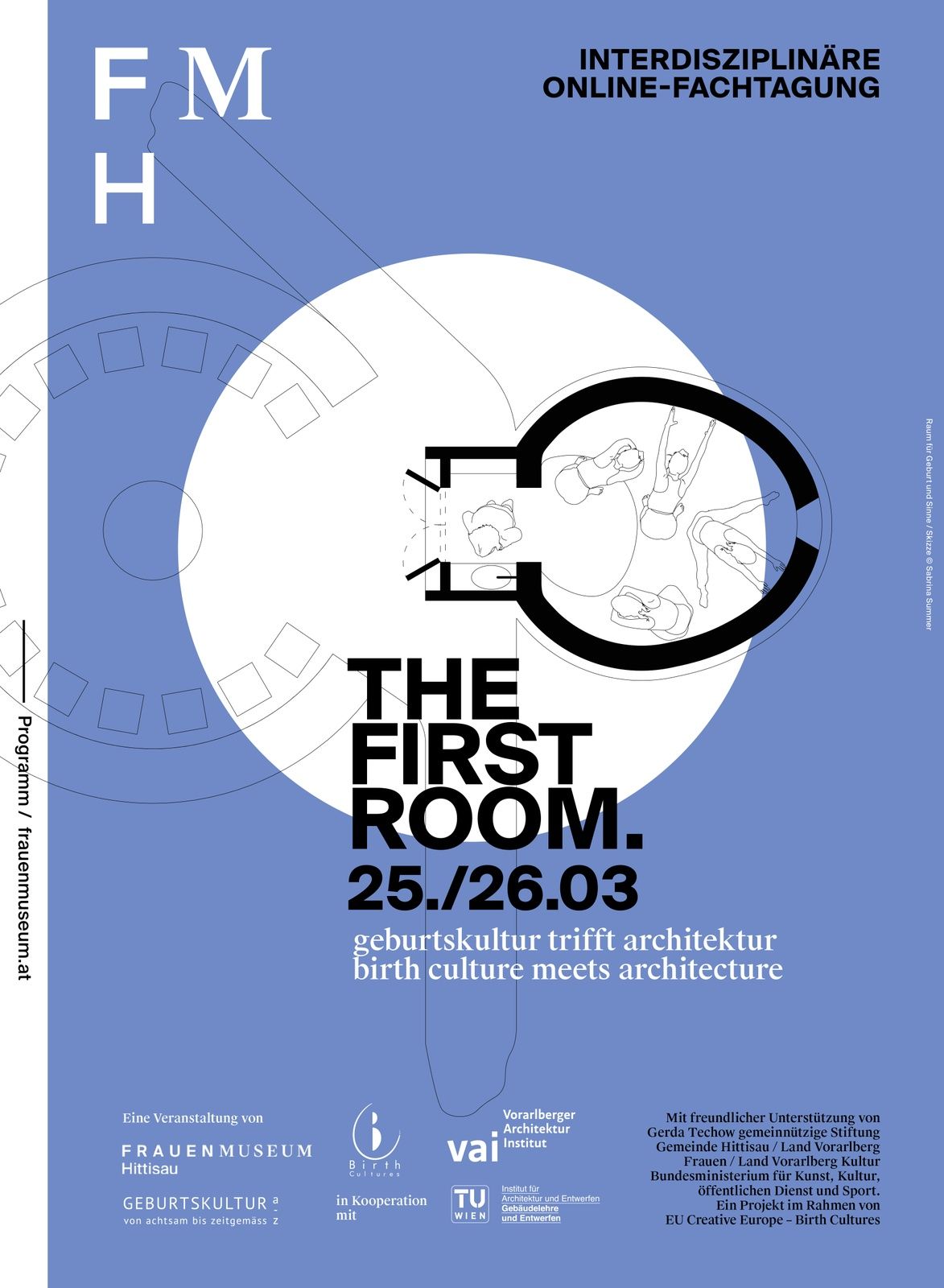 interdisziplinäre Online-Fachtagung, Online-Veranstaltung, FachtagungDie interdisziplinäre Fachtagung durchleuchtet das Thema „Räume für Geburt“ sowie regenerative Prozesse, die in Zusammenhang mit dem architektonischen Umfeld stehen. Referent|innen aus Fachbereichen wie Geburtsmedizin, Architektur, Hebammenkunde, Design, Psychologie, Baugeschichte, Holz- und Lehmbau, Materialwissenschaft und Gesundheitsmanagement zeichnen ein umfassendes Bild über die heilsame Wirkung von Räumen. In moderierten Gesprächsrunden bringen Fachpersonen ihre persönlichen und praktischen Erfahrungen ein. Eine umfangreiche Projektpräsentation durch Architektur-Studierende der TU Wien sowie kleine Bodywork-Einheiten zur Schulung der Sinne ergänzen das Programm.